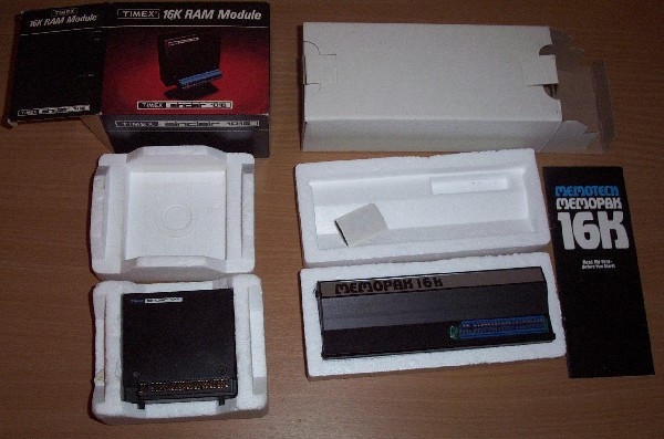 The RAM packs available are Memotek Memopak and the 16k Timex/Sinclair RAM. These items are supplied boxed in their original
